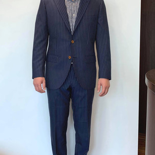 ご来店のY様です。 同級生の皆様から オーダースーツを プレゼントとなり 納品と最終試着に。